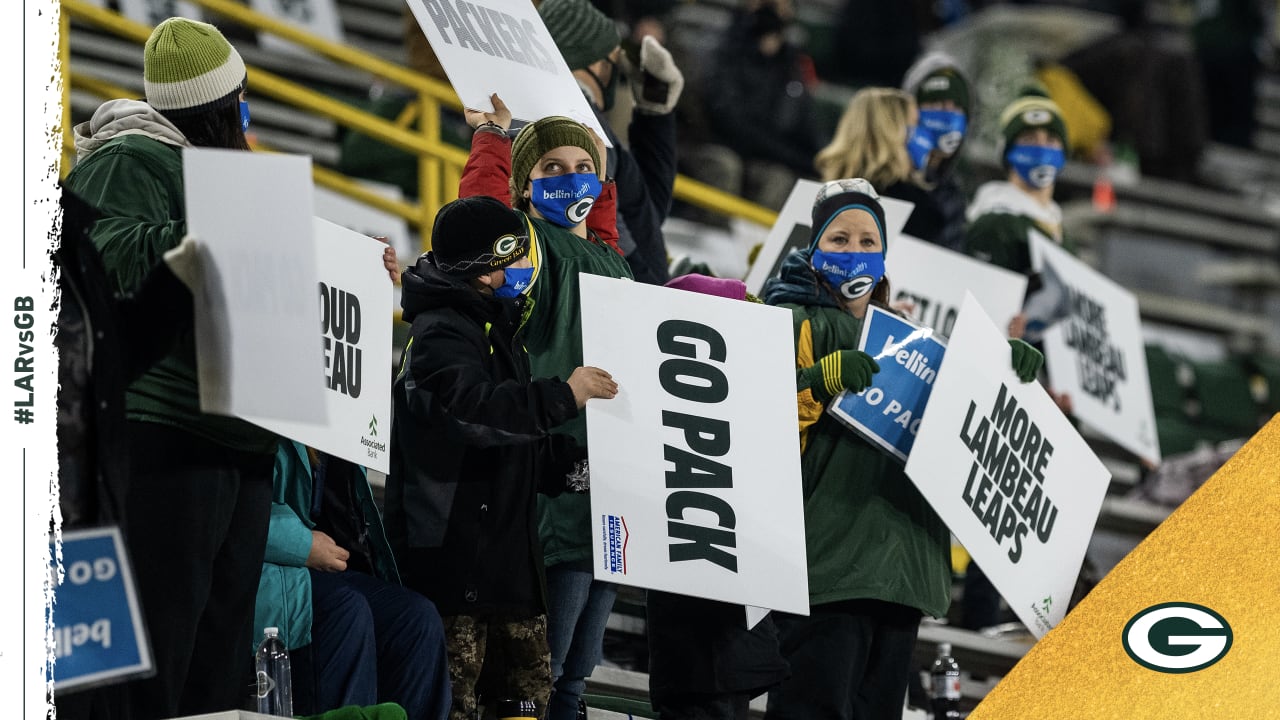 Game attendees on Saturday will be required to remain within their socially distanced pod of seats unless using the restroom or purchasing food or beverages. Other protocols include the use of mobile tickets as the method of entry, enhanced cleaning measures in the stadium, hand sanitizer stations throughout the concourse, cashless concession locations and required face coverings. Tailgating in the Lambeau Field parking lots also will be prohibited for playoff games. No carry-in items, including seat backs, clear bags or purses, will be permitted. A small clutch purse for personal belongings is allowed, but it must not exceed 4.5'' x 6.5'' in size.